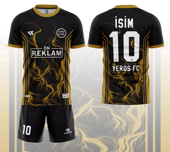 Ana Sayfa Futbol Forması Tasarla Siyah Sarı Duman Desenli Halı Saha Forması VF00070